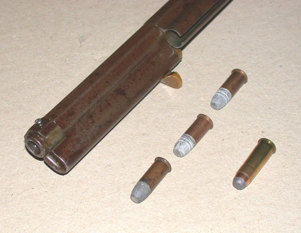 Во-первых — в ранних магазинных системах из-за особенностей конструкции их магазинов (прикладных, подствольных) обычно использовались сравнительно короткие и слабые патроны, часто кольцевого воспламенения, по мощности близкие к револьверным. Например, в подствольном трубчатом магазине при применении патронов центрального воспламенения, к типу которых тогда уже принадлежало большинство патронов военного образца, опасались случайных разрывов от удара пули заднего патрона о капсюль переднего[4], поэтому многие винтовки с таким магазином использовали патроны кольцевого воспламенения, имевшие вместо центрально расположенного капсюля колечко капсюльного состава прямо в закраине гильзы, малопригодные для военного оружия.