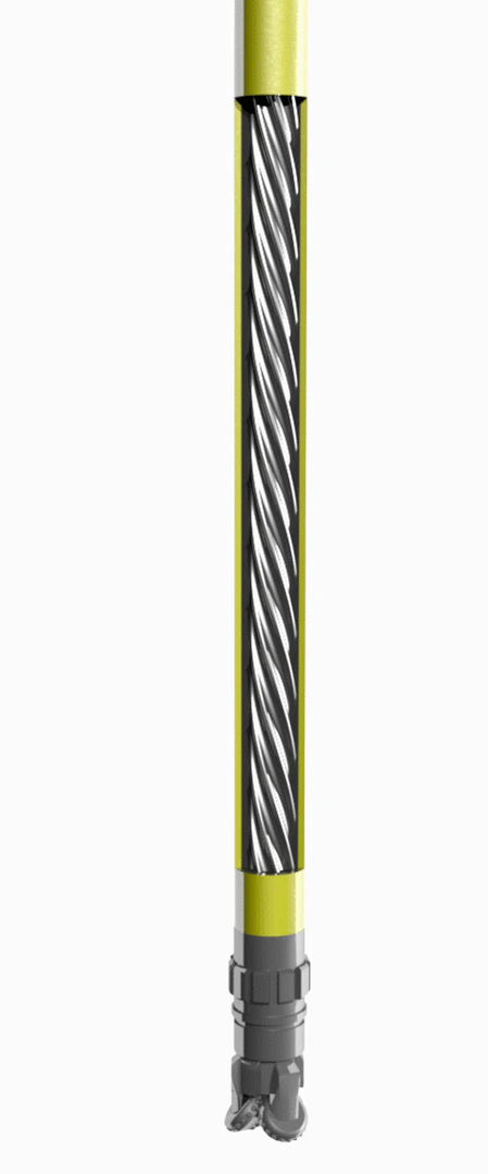 Двигательная (силовая) секция предназначена для преобразования энергии потока жидкости в вращательное движение ротора. Она состоит из стального ротора с винтовыми зубьями и статора, который имеет эластичную обкладку со внутренней винтовой поверхностью, выполненную обычно из резины. Статор и ротор двигательной секции должны соответствовать некоторым условиям:[5]