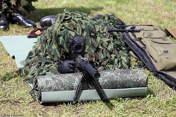 Во время Второй чеченской войны снайпер одного из российских спецподразделений, находясь в засаде, занял позицию в кроне густого дерева. Обнаружив группу боевиков, он дождался, пока все они выйдут на открытую местность и, открыв огонь на дальности эффективного огня, уничтожил всю группу прежде, чем они разобрались, откуда ведётся огонь[1].