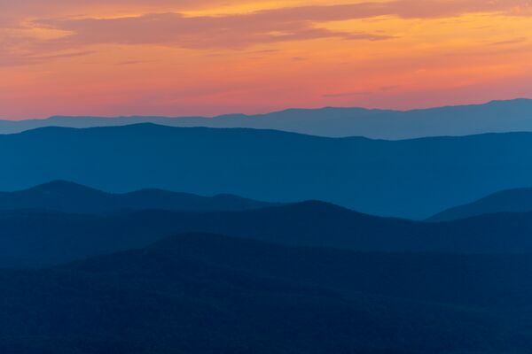Тайдуотер — приатлантическая низменность между атлантическим побережьем и линией падения. Она включает в себя восточный берег и основные устья Чесапикского залива. Пидмонт — серия предгорий, образованных осадочными и вулканическими породами к востоку от гор, которые были сформированы в мезозойскую эру[21]. Этот регион, известный своей тяжёлой глинистой почвой, включает Юго-западные горы вокруг Шарлоттсвилля[22]. Горы Голубого хребта — физико-географический регион Аппалачских гор с самыми высокими вершинами в Виргинии, самой высокой из которых является гора Роджерс (1746 м)[23]. Регион Ридж-энд-Валли находится к западу от гор, образован на карбонатных породах и включает в себя горный хребет Массануттен и Большую Аппалачскую долину, которая в Виргинии называется долиной Шенандоа[24]. Плато Камберленд и горы Камберленд находятся в юго-западной части Виргинии, к югу от Аллеганского плато. В этом регионе реки текут на северо-запад с дендритной речной системой в бассейн реки Огайо[25].