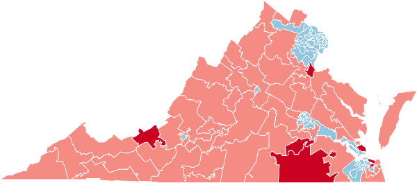 В результате выборов, прошедших в штате в 2017 году, демократы заняли три должности в органах исполнительной власти: уходящий в отставку вице-губернатор Ральф Нортэм занял пост губернатора, Джастин Фэрфакс был избран вице-губернатором, а Марк Херринг остался в должности генерального прокурора. На одновременно прошедших выборах в Палату делегатов демократы получили пятнадцать из шестнадцати мест, которые ранее занимали республиканцы[423]. Контроль над Палатой делегатов сводился к равным результатам выборов в 94-м округе, на которых республиканец выиграл путем жеребьёвки, что дало партии незначительное большинство в 51-49 голосов на законодательных сессиях 2018-19 годов[424]. В то время Виргиния считалась штатом с наибольшим количеством фальсификаций во время выборов в законодательные органы, поскольку республиканцы контролировали Палату представителей, набрав всего 44,5 % от общего числа голосов[425]. В 2019 году федеральные суды установили, что одиннадцать избирательных округов во время выборов в Палату представителей, в том числе 94-й, были неконституционно направлены на дискриминацию афроамериканцев[426][427]. Скорректированные округа использовались на выборах 2019 года, в результате которых демократы получили полный контроль над Генеральной Ассамблеей, несмотря на политический кризис в начале того же года[428][429]. Затем в 2020 году среди избирателей был проведён референдум, вопросом которого стала передача контроля над перераспределением округов штата и округов Конгресса комиссии из восьми граждан и четырёх законодателей от каждой из двух основных партий, а не законодательному органу[430].