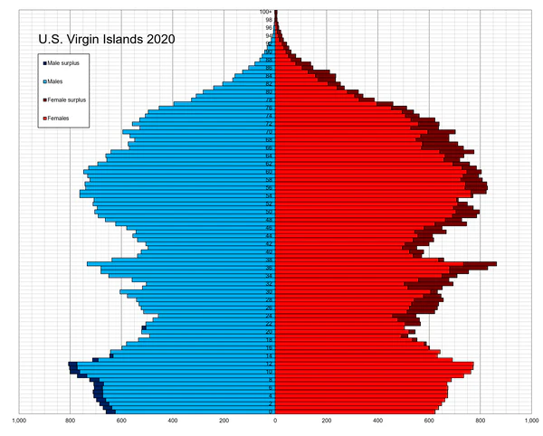 Площадь — 346,36 км², население — 106 405 человек (2010). Самые большие три острова — Сент-Томас, Сент-Джон и Санта-Крус.