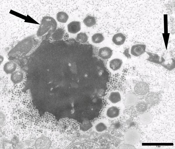 Было показано, что репликация вирофага замилон значительно усиливалась после сайленсинга трёх генов мимивируса: R349 (убиквитинлигаза, имеющая домен Домен HECT), R350 (АТФ-связывающий белок с хеликазной активностью) и R354 (ДНК-связывающий белок с нуклеазной активностью). В нормальных условиях замилон не может использовать вирусные фабрики мимивируса для размножения, вероятно, за счёт активности защитной системы мимивируса, известной как MIMIVIRE (см. ниже. Было установлено, что геном вирофага мавирус может интегрироваться в геном клетки-хозяина. Инфекция, вызванная CroV, активирует мавирус, и после лизиса клетки наружу выходят и вирионы CroV, и вирионы мавируса[10].