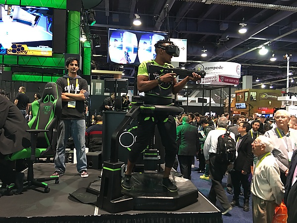 Полное погружение обеспечивает шлем виртуальной реальности или гарнитура (HMD), включающие экраны с отдельным изображением для каждого глаза, системы бинаурального звука и отслеживание движений головы по 6 степеням свободы. Управление и взаимодействие с виртуальным миром реализуются контроллерами движения с тактильной отдачей, а также специальными беговыми дорожками, позволяющими имитировать свободные перемещения.