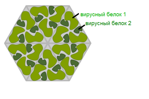 Большинство вирусов животных имеют икосаэдрическую или почти шарообразную форму с икосаэдрической симметрией. Правильный икосаэдр является оптимальной формой для закрытого капсида, сложенного из одинаковых субъединиц. Минимальное необходимое число одинаковых капсомеров — 12, каждый капсомер состоит из пяти идентичных субъединиц. Многие вирусы, такие как ротавирус, имеют более двенадцати капсомеров и выглядят круглыми, но сохраняют икосаэдрическую симметрию. Капсомеры, находящиеся в вершинах, окружены пятью другими капсомерами и называются пентонами. Капсомеры треугольных граней имеют 6 соседей-капсомеров и называются гексонами[80]. Гексоны, по существу, являются плоскими, а пентоны, образующие 12 вершин, — изогнутыми. Один и тот же белок может выступать субъединицей и пентомеров, и гексамеров, или же они могут состоять из различных белков.