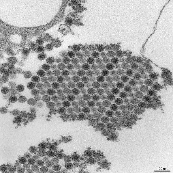 Вирус чикунгунья (CHIKV) является представителем рода Alphavirus и семейства Togaviridae. Вирус чикунгунья имеет икосаэдрический капсид, окруженный липидной оболочкой, диаметром 70 нм. Он представляет собой одноцепочечный РНК-вирус с положительной полярностью, длина генома составляет около 11,8 кб[17]. Этот вирус входит в комплекс вирусов леса Семлики и тесно связан с вирусом Росс Ривер, вирусом О'Ньонг-Ньонг и вирусом леса Семлики. Поскольку он передается членистоногими, а именно комарами, его также можно отнести к арбовирусам (arbopod-borne virus). В Соединенных Штатах он классифицируется как приоритетный патоген категории В, и для работы с ним требуются меры предосторожности III уровня биобезопасности[18].