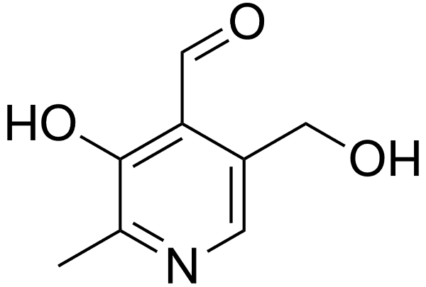 Брутто-формула пиридоксаля C8H9NO3. Пиридоксаль отличается от пиридоксина тем, что вместо одной из трёх гидроксогрупп к пиридиновому кольцу присоединена карбонильная группа, так что пиридоксаль является одновременно и альдегидом. Молярная масса 0.16716 кг/моль. Представляет собой кристаллический порошок, плавящийся при 165 °C. Пиридоксаль содержится в зелёных частях некоторых растений, в цветной и белокочанной капусте, в мясе. Регистрационный номер CAS 66-72-8, для соли (гидрохлорида) 65-22-5.