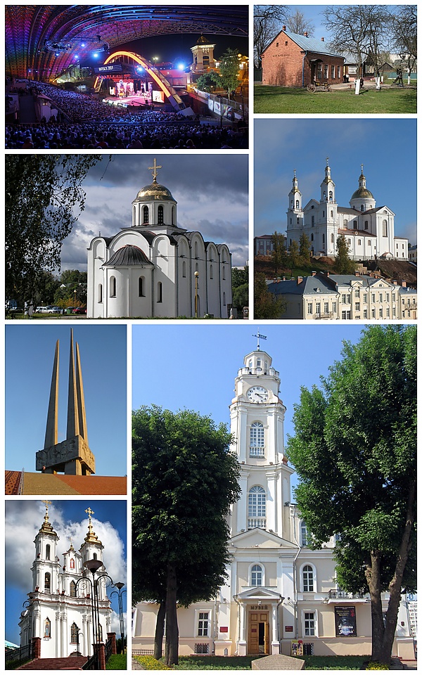 Второй по возрасту город Белоруссии (974 год[6]) после Полоцка. Возник на высоких берегах Западной Двины и Витьбы, давшей ему имя, на пути из варяг в греки. По городской легенде XVIII века, основан княгиней Ольгой. Город формировался как один из центров объединения славян-кривичей, а удобное географическое положение на пересечении важнейших торговых путей способствовало росту и процветанию его на протяжении последующих веков.
