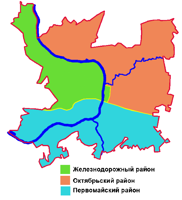 | Внутреннее деление | Железнодорожный, Октябрьский, Первомайский районы | ||||