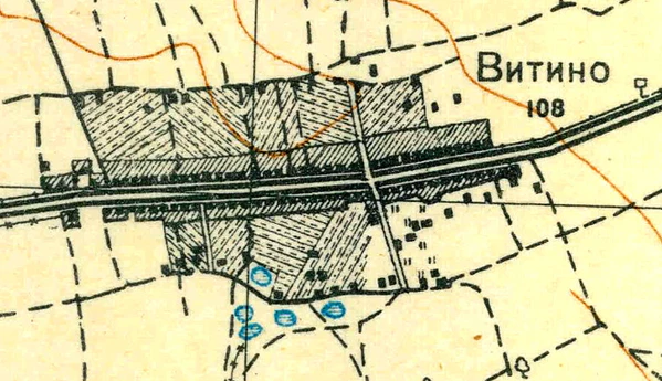 ВИТИНО — деревня барона Корфа, по почтовому тракту, число дворов — 57, число душ — 160 м. п.[11] (1856 год)