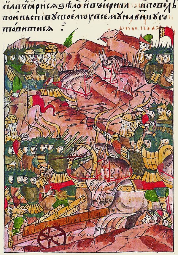 Витовт стремился к тому, чтобы папа римский объявил крестовый поход, который позволил бы ему сокрушить Золотую Орду, завоевать русские земли и получить королевскую корону[18]. В 1399 году в битве на Ворскле возглавленное Витовтом объединённое войско, включавшее воинов Великого княжества Литовского, поляков, русских князей, крестоносцев и татар бежавшего в Литву хана Тохтамыша, потерпело сокрушительное поражение от войск хана Тимура Кутлуга и темника Едигея. Войско Витовта форсировало реку и обрушилось на войска Тимура Кутлуга, но в это время войска Едигея обошли его с флангов, прижав к реке и почти полностью уничтожив. Сам Витовт был ранен и едва не утонул.