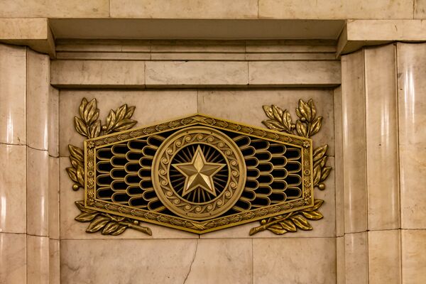 Весь подземный зал облицован белым, чуть холодноватым уральским мрамором из месторождения «Коелга». Пол — из тёмного гранита, станцию освещают массивные люстры. Путевые стены покрыты мрамором. На дверях путевых стен установлены декоративные решётки с надписью «1955», по году открытия станции, такая же решётка располагается в торцевой стене центрального зала.