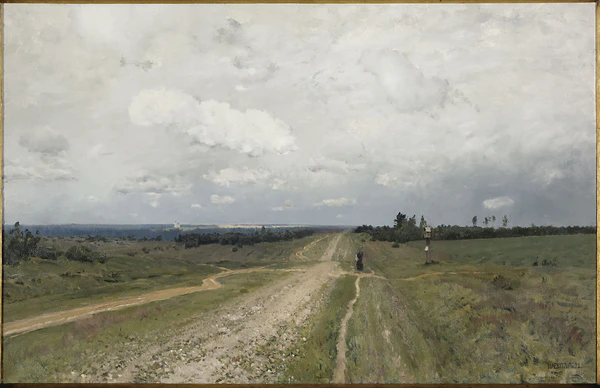 Москва с её оживлением осталась позади… Я стал расспрашивать крестьян про дорогу и в первый раз услышал упоминание о старом почтовом тракте между Москвой и Нижним Новгородом… Когда я в самом деле очутился на «столбовой» дороге, ограждённой канавками и протянувшейся между тощим кустарником куда-то в гору, на меня вдруг напала щемящая тоска… Я сообразил, что ведь этот большой тракт и есть знаменитая «Владимирка»… Она ведёт через Владимир не только в Нижний, но и много дальше, восточнее, куда ворон не заносит добровольно костей… тут я… в самом деле… «попирал» ногами заплывшую песком и дорожной грязью щебёнку подлинной Владимирки