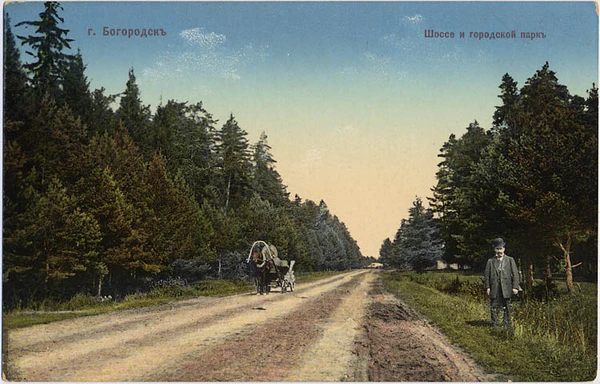 Владимирское шоссе идет от Москвы на восток. Щебень насыпан в 22 фута ширины; путь этот называется Сибирским и служит сообщением Москвы с городами восточной России: Владимиром, Нижним Новгородом, Казанью, Оренбургом и Уфою; на знаменитую Нижегородскую ярмарку провозятся по этому шоссе товары из Москвы и Петербурга; и с Нижегородской ярмарки идут по нему обратно. В летнее время, кроме перевозки тяжестей, проезд по Владимирскому шоссе весьма велик; три раза в неделю отправляются из Москвы до Нижнего Новгорода почтовые кареты; кроме того, почти ежедневно отправляются дилижансы трех частных заведений. От Москвы до Купавинской станции шоссе идет большею частию лесами… Реки, пересекающие эту дорогу, суть следующие: на 18 версте от Москвы речка Чижовка, от ст. Горенской на 3 версте р. Пехра, на 14 версте речка Купавинка… Через все поименованные реки и речки находятся постоянно и хорошо устроенные деревянные мосты; одни на сваях, усыпанные сверху щебнем, другие же на сваях и арках, с дощатым полом…