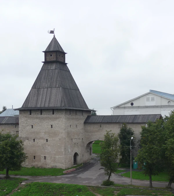 С середины XV в., после возведения крепостных стен Окольного города, окончательно сложилась величественная панорама Псковской крепости от реки Великой, поражавшая иностранные посольства и купеческое сословие гостей. Не случайно на иконах с изображениями Пскова город показан с высоты птичьего полета, с запада.