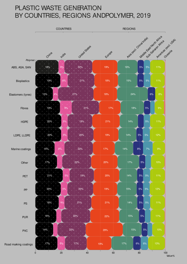 Пластик и синтетический текстиль производят из полимеров. Словарь Merriam-Webster определяет полимер так — «химическое соединение или смесь соединений, образованная в результате полимеризации и состоящая из повторяющихся структурных единиц». Наиболее распространёнными полимерами среди пластика являются ПЭТ, полиэтилен или полипропилен (ПП). В текстиле наиболее распространёнными полимерами являются полиэстер и нейлон[36].