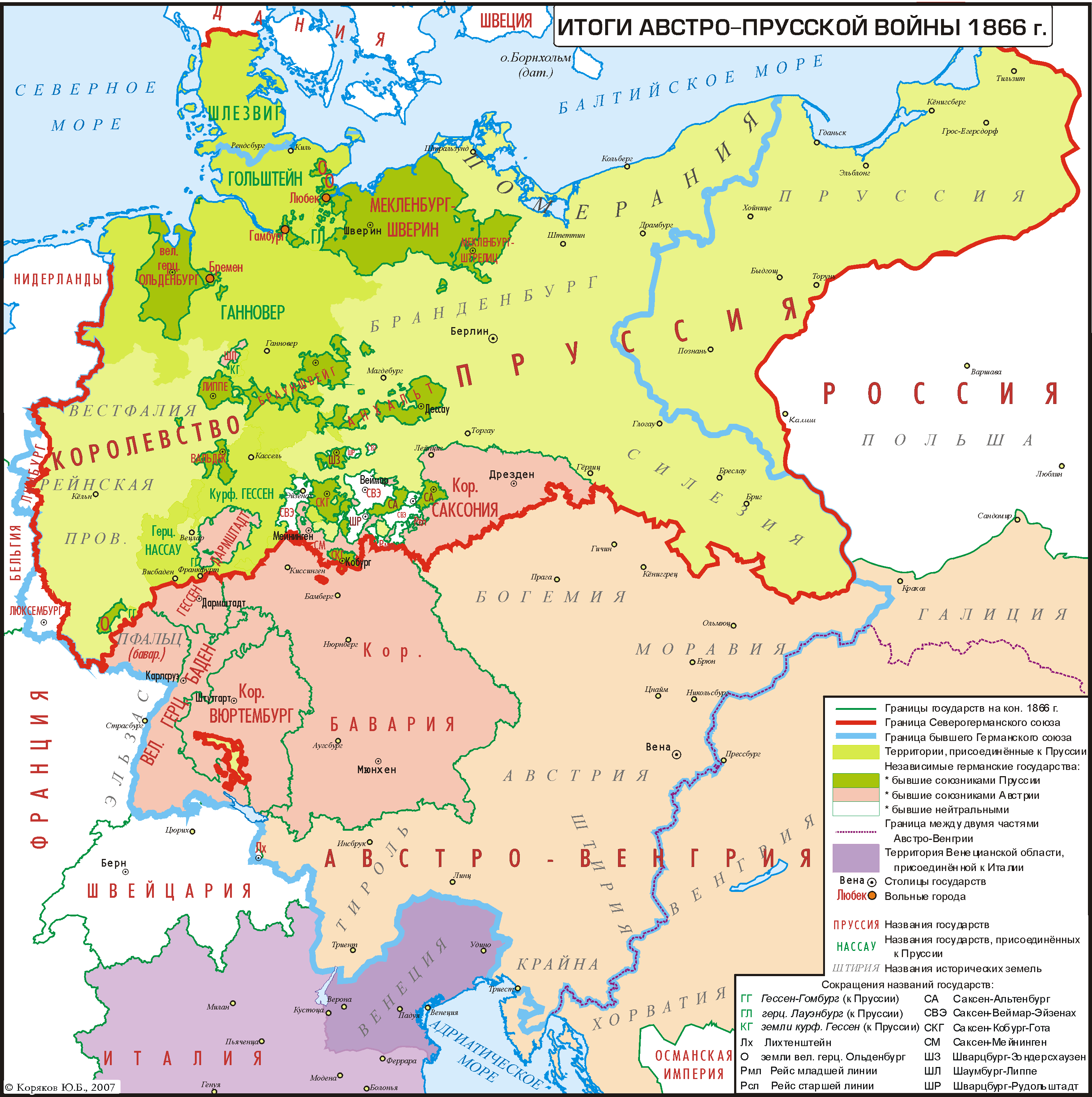 Под именем Северогерманского союза в Центральной Европе возникло фактически новое государство. По этому поводу Бисмарк писал в своих мемуарах:
