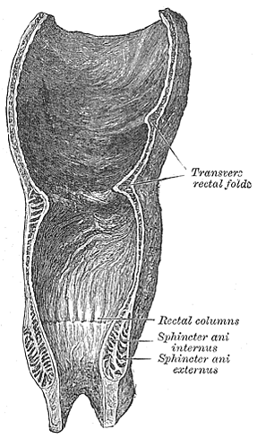 Мышечные волокна внешнего сфинктера ануса обхватывают нижнюю часть внутреннего сфинктера ануса. Хотя сфинктеры контактируют между собой, между ними имеется чётко выраженная граница.