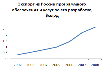 Объём экспорта российского программного обеспечения и услуг по его разработке в 2020 году вырос приблизительно на 4,3 % и составил около $8,6 млрд[65].