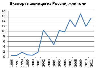 По данным на начало 2010 года, Россия находилась на 3-м месте в мире по экспорту зерновых (после США и Евросоюза) и на 4-м месте в мире по экспорту пшеницы (после США, Евросоюза и Канады)[37][38].