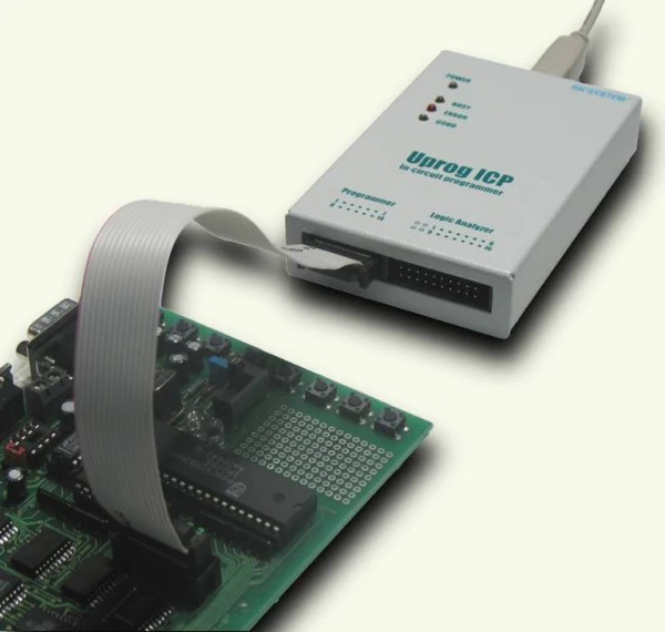 - программатор работает с ПЗУ и EEPROM микроконтроллера (МК) как с внешней памятью, самостоятельно размещая байты прошивки по нужным адресам. Ядро МК при этом не задействовано, а выводы переведены в высокоимпедансное состояние;