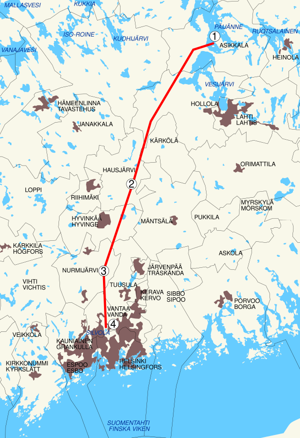 Водовод начинается на Асиккалансельке у озера Пяйянне, второго по величине в Финляндии. Ввиду больших уклонов туннеля вода по нему перемещается самотёком. Вода из южной части озера Пяййянне имеет настолько высокое качество, что её можно использовать для питья без дополнительной очистки. Окончание туннеля — водохранилище Силвола в городе Вантаа (Большой Хельсинки). Из водохранилища, имеющего площадь около 0,5 км², вода с помощью насосов передаётся на станции водоснабжения в Питкякоски и Ванхакаупунки. Поскольку в глубоком туннеле поддерживается постоянная температура и состав воды, для её очистки требуются минимальные усилия.
