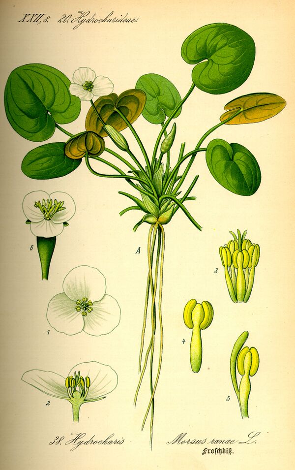 - Губанов И. А. 84. Hydrocharis morsus-ranae L. — Водокрас лягушачий, или обыкновенный // Иллюстрированный определитель растений Средней России : в 3 т. / И. А. Губанов, К. В. Киселёва, В. С. Новиков, В. Н. Тихомиров. — М. : Товарищество науч. изд. КМК : Ин-т технол. исслед., 2002. — Т. 1 : Папоротники, хвощи, плауны, голосеменные, покрытосеменные (однодольные). — С. 164. — 527 с. — 5000 экз. — ISBN 8-87317-091-6.