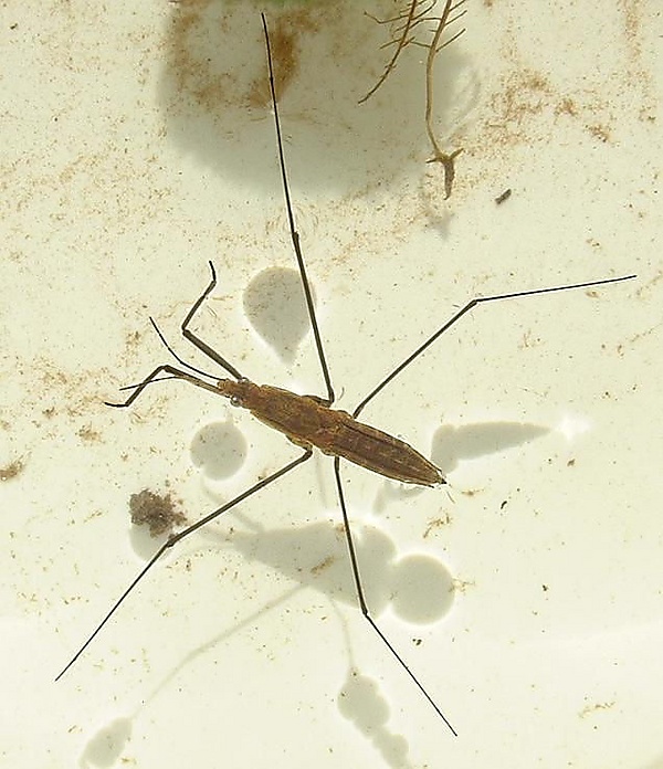 Тело и кончики ног покрыты жёсткими несмачиваемыми водой волосками, создавая гидрофобную поверхность (см. закон Кассье), благодаря чему водомерки приспособлены к скольжению по воде. Движется водомерка, широко расставив две пары длинных и тонких ног, — среднюю и заднюю. При движении ноги каждой пары заносятся вперёд одновременно, в отличие от водомерок рода Hydrometra, которые передвигают ноги каждой стороны попеременно. Более короткие передние ноги направлены вперед и используются для удержания добычи. Отталкиваясь от водной поверхности средними ногами, водомерка как бы скользит длинными прыжками по её поверхности. Задняя пара ног используется для управления движением, выполняя роль руля. При преодолении препятствий способны совершать скачки.