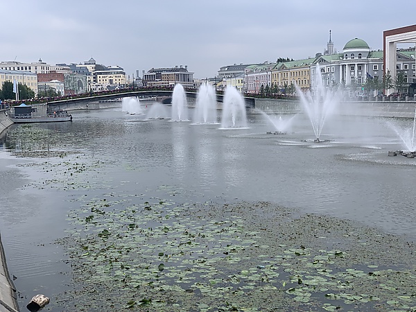 В 1995-м году в акватории канала появились первые в Москве плавающие фонтаны. Тогда это были собранные работниками Гормоста понтоны с установленными на них насосами ГНОМ-100. Всего фонтанов было четыре.