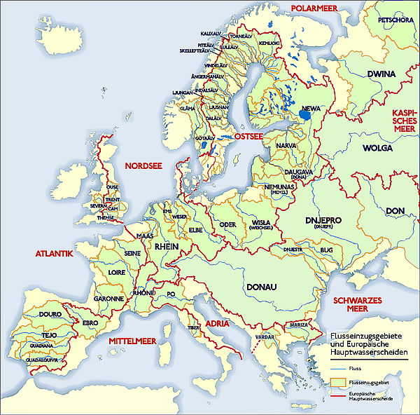 Центральный водораздел Европейской части России, Русской равнины — Валдайская возвышенность, Северные Увалы и ряд небольших возвышенностей. Из местных болот и озёр, залегающих между холмами и обильно питаемых осадками, дождями и снегами, берут начало главные реки Европейской России, относящиеся к бассейнам разных морей — Волга (Каспийское море), Днепр (Чёрное море), Западная Двина (Балтийское море).