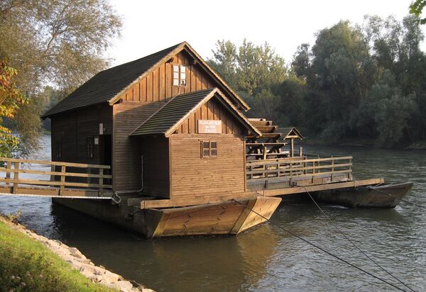 - Плавучая водяная мельница-музей в немецком городе Минден на реке Везер.