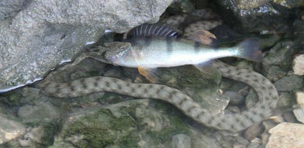 - Охота водяного ужа на рыбу Архивная копия от 1 января 2020 на Wayback Machine