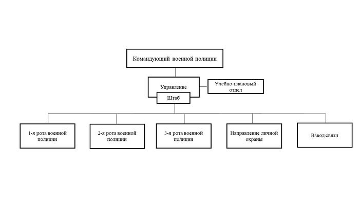 Роты военной полиции, отличаяются по количеству личного состава, но имеют типовую штатную структуру и состоят из[1][2]: