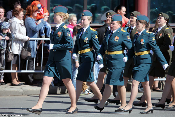 - В 2017 году в параде 9 мая на Красной площади в Москве помимо указанных подразделений участвовали женщины-военнослужащиe ВВС-ВКС (Военно-воздушной академии им. Ю. А. Гагарина и проф. Н. Е. Жуковского и Военно-космической академии им. А. Ф. Можайского) — в закрытых кителях синего цвета общего покроя, с застежкой на «женскую» сторону, с сутажным кантом по воротнику и обшлагам, с тремя пуговицами на обшлагах; юбки — белого цвета; сапоги, кепи — общего образца; погоны — ВКС, шестиугольные, парадные, нашивные, с эмблемами рода войск.