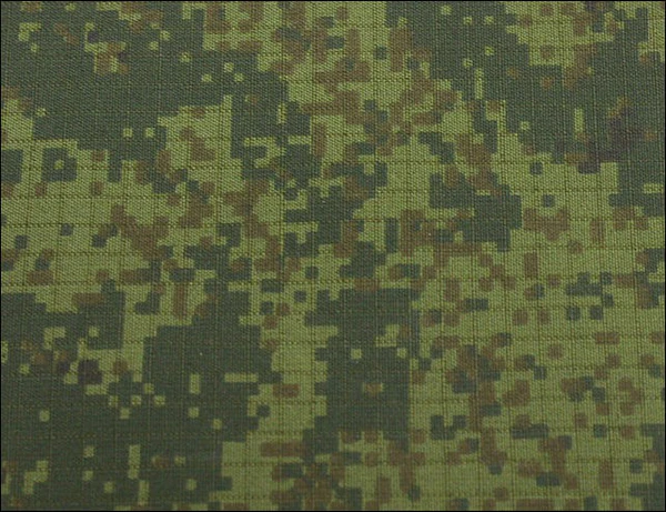 - разработанном в 15 ЦНИИИ Минобороны России маскировочным рисунком «Тёмный» (также известным под названиями «пиксель», «русская цифра», в официальных документах иногда проходит под нейтральным названием «ЕМР» — единый маскировочный рисунок).