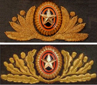 - установлено ношение геральдической эмблемы на тулье (кроме ВВС-ВКС), малых золотых листьев на концах воротника;