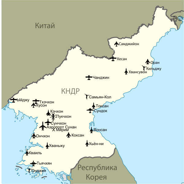 | P’yongyang South | ?38°57′00″ с. ш. 125°43′00″ в. д.GЯO | Вертолётная площадка | ? |
