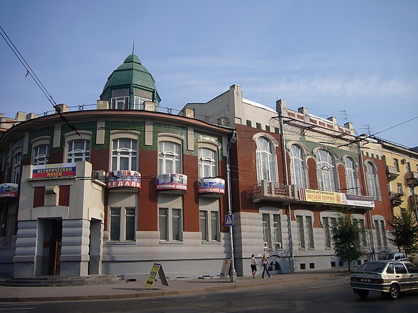 В 1914 году было построено здание в стиле позднего русского модернизма по проекту архитектора Д. А. Вернера для общественного собрания, казённых и общественных организаций, по адресу: ул. Рабочая, 1 (Шостаковича)/ул. Советская, 157 (Куйбышева). После революции 1917 года здание стало принадлежать военному округу. В нём располагались красноармейский клуб им. К. Либкнехта, Дом колхозника им. В. И. Ленина, Клуб ворошиловских стрелков, одно из отделений военного госпиталя, школа морских лётчиков, Фрунзенский райсовет СОВАВИАХИМа, областной комитет ДОСААФ[2][3][4].