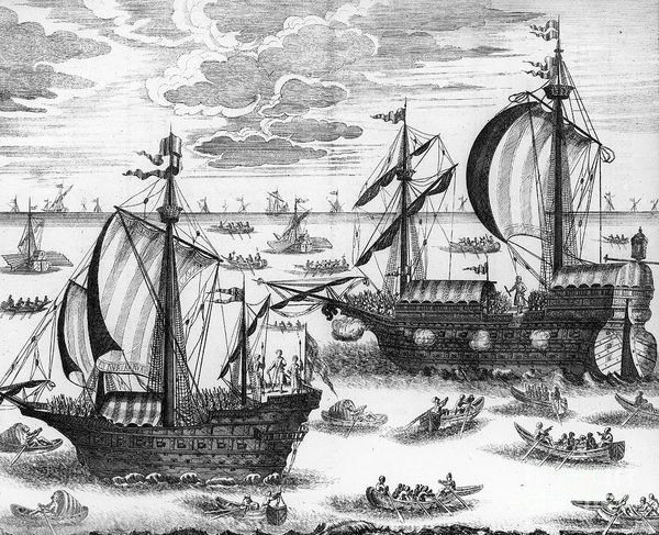 Изучив за границей морское дело, Пётр по возвращении в Россию из Великого посольства основал Балтийский флот, частью купив корабли за границей, частью построив их в России, в Петербурге и Архангельске, в основанных здесь адмиралтействах.