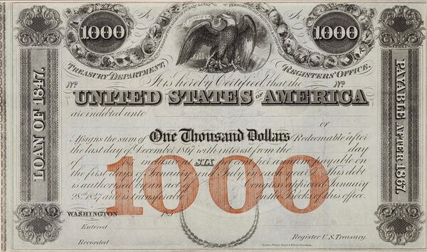 Джей Кук был первым, кто начал продавать облигации общественности, обращаясь при этом к чувству патриотизма граждан. С 1862 по 1864 года через посредников он продал военных облигаций на сумму US $500 в поддержку Союза во время Американской гражданской войны. Военные облигации были использованы как Союзом, так и правительством Конфедеративных Штатов Америки с целью увеличения средств для ведения войны. 62 % своих военных сил Союз финансировал с помощью облигаций.(Источник: Почему победил Север в гражданской войне. Дэвид Херберт Дональд(David Herbert Donald))[1][2]