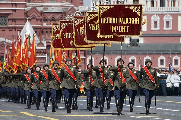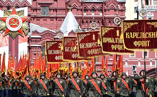 - Знамённые группы со штандартами 10 фронтов заключительного этапа Великой Отечественной войны. Знаменная рота проносит 45 боевых знамён прославленных соединений и наиболее отличившихся воинских частей;