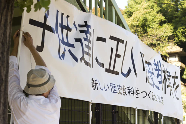 Отрицание военных преступлений Японии — одна из ключевых задач открыто ревизионистского лобби националистической ультраправой организации Ниппон-кайги, основанной в 1997 году и также защищающей идеи патриотического воспитания, пересмотра конституции и официального статуса посещений храма Ясукуни[162][163][164][165]. Членами организации являются многочисленные парламентарии, многие министры, несколько премьер-министров и главные священники крупных святилищ синтоизма. Председатель, Тору Миёси, был главным судьей Верховного суда Японии.