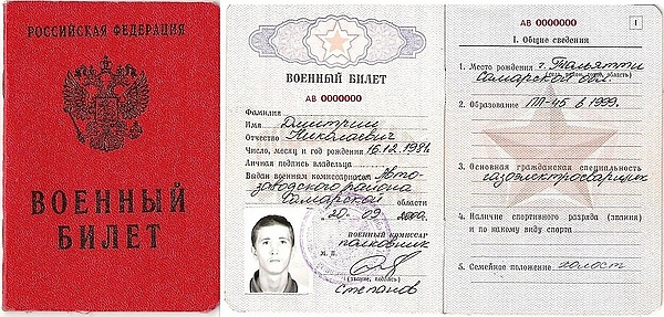 В СССР в военном билете указывались обязательные пункты: