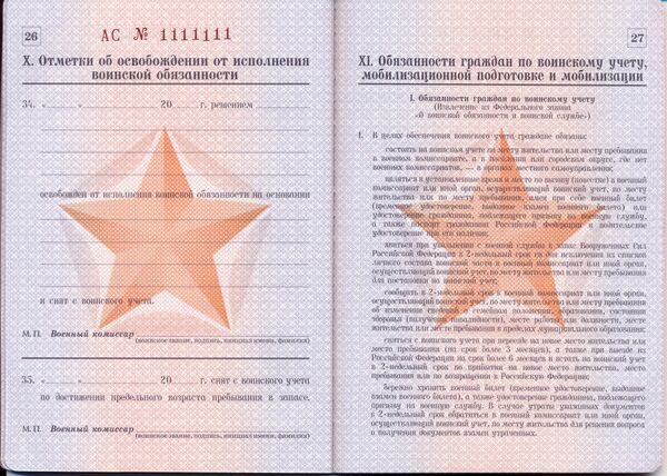 | Выдаётся в | Военный комиссариат |
