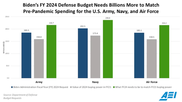 Военный бюджет США рассматривается и утверждается обеими палатами Конгресса США ежегодным Законом о национальной обороне (NDAA). 14 декабря 2023 года Конгресс США утвердил военный бюджет на 2024 год. Окончательная версия предусматривает финансирование национальной обороны в размере 886 млрд долларов США. Это на 28 млрд долларов больше, чем годом ранее.[1][2]