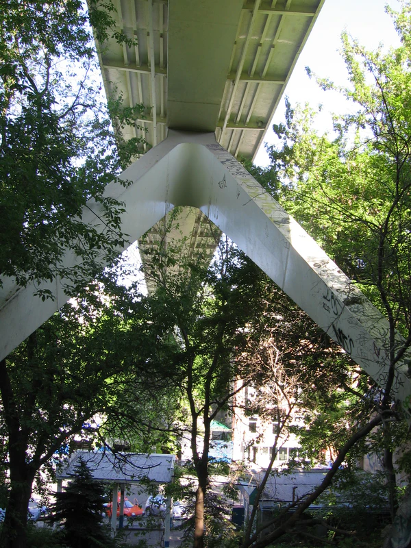 Поверху Военный спуск пересекает Тёщин мост[3]