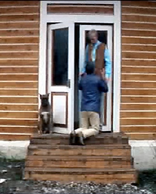 В профиль в виде барельефа с правой стороны от стоящего свидетеля изображён музыкант, который играет на флейте. Его фигура, возможно, напоминает о музыке, которая через несколько мгновений заполнит звуками радости дом отца.