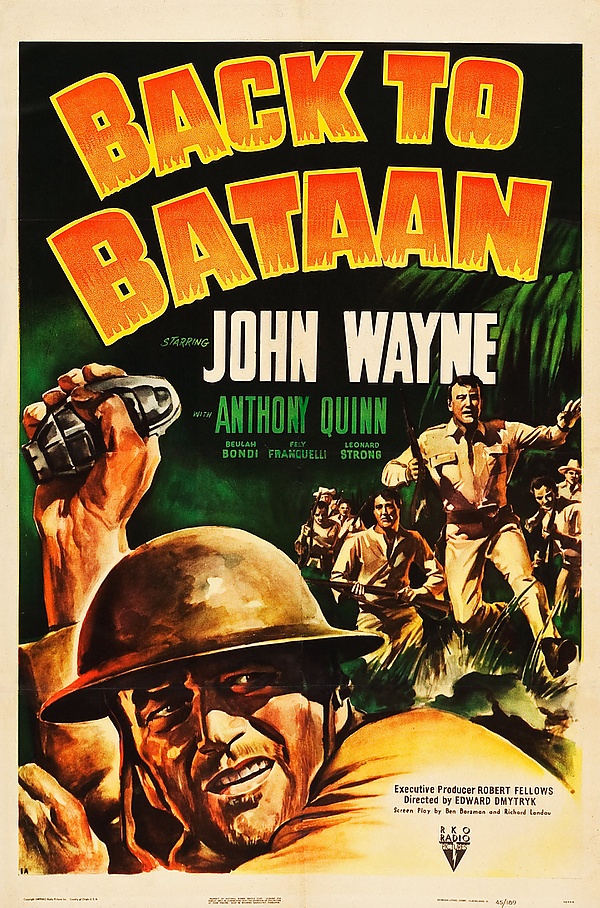 «Возвраще́ние на Батаа́н» (англ. Back to Bataan) — американский чёрно-белый военный фильм 1945 года, снятый РКО Радио Пикчерз. Продюсером выступил Роберт Феллоуз, режиссёром — Эдвард Дмитрык. Главные роли исполнили Джон Уэйн и Энтони Куинн[4]. Фильм основан на событиях, произошедших после битвы за Батаан (1941—1942) на острове Лусон в Филиппинах[5]. На сайте Rotten Tomatoes «Возвращение на Батаан» имеет рейтинг 86 %[6].