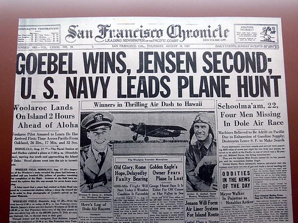 | «Алоха» (Aloha) | Моноплан Breese-Wilde 5 | Мартин Дженсен | Пол Шлютер | — | Граждане Гонолулу по народной подписке | Второе место в гонке |