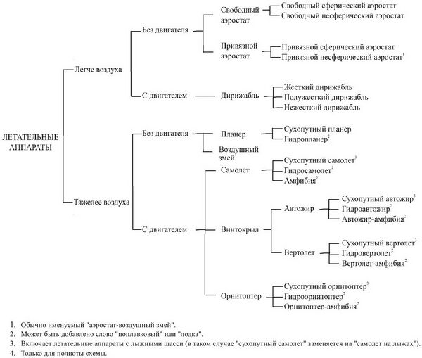 Приложение 7 к Конвенции о международной гражданской авиации (Национальные и регистрационные знаки воздушных судов) подразделяет воздушные суда/летательные аппараты на летательные аппараты легче воздуха и летательные аппараты тяжелее воздуха.